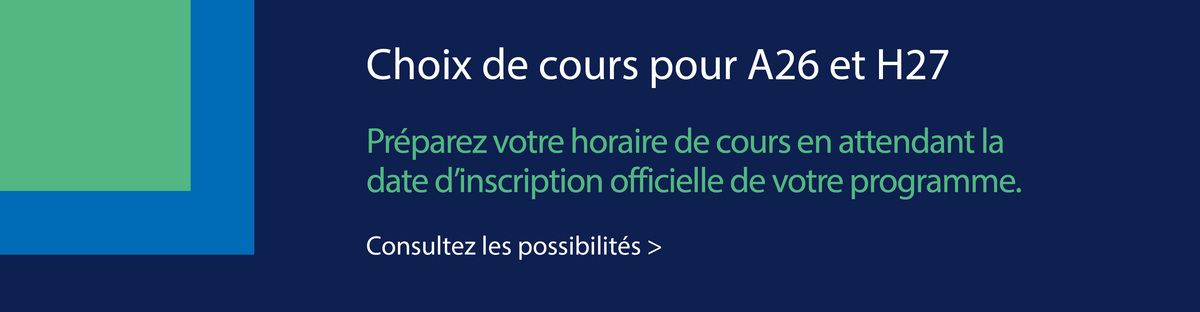 Les paniers de cours pour les trimestres d'automne 2026 et d'hiver 2027 ouvriront officiellement à compter du 9 avril 2026.